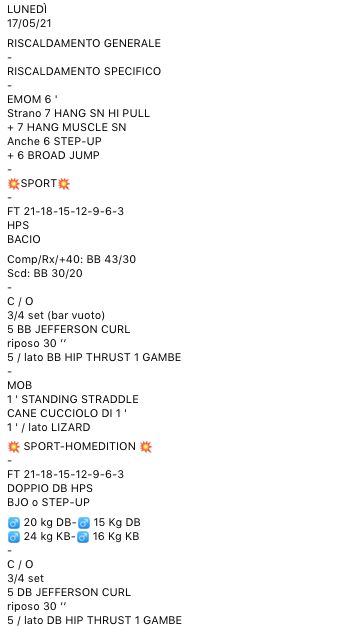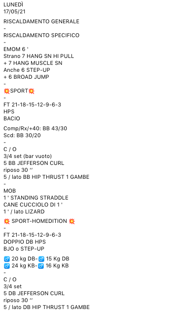 Pubblicato daprogettocrossfit17 Maggio 202129 Maggio 2021Pubblicato in: Wod Condividi: Fai clic per condividere su X (Si apre in una nuova finestra) X Fai clic per condividere su Facebook (Si apre in una nuova finestra) Facebook Mi piace Caricamento... Correlati