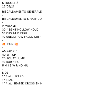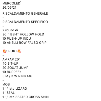 Pubblicato daprogettocrossfit26 Maggio 202129 Maggio 2021Pubblicato in: Wod Condividi: Fai clic per condividere su X (Si apre in una nuova finestra) X Fai clic per condividere su Facebook (Si apre in una nuova finestra) Facebook Mi piace Caricamento... Correlati