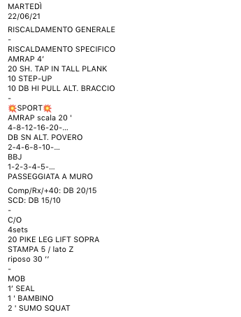 Pubblicato daprogettocrossfit22 giugno 202124 giugno 2021Pubblicato in: Wod Condividi: Fai clic per condividere su X (Si apre in una nuova finestra) X Fai clic per condividere su Facebook (Si apre in una nuova finestra) Facebook Mi piace Caricamento... Correlati