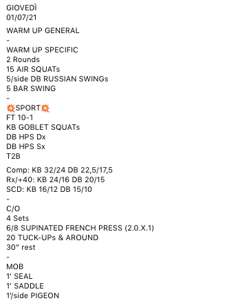 Pubblicato daprogettocrossfit1 luglio 20215 luglio 2021Pubblicato in: Wod Condividi: Fai clic per condividere su X (Si apre in una nuova finestra) X Fai clic per condividere su Facebook (Si apre in una nuova finestra) Facebook Mi piace Caricamento... Correlati