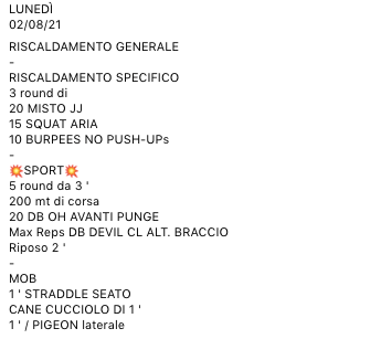 Pubblicato daprogettocrossfit2 agosto 202110 agosto 2021Pubblicato in: Wod Condividi: Fai clic per condividere su X (Si apre in una nuova finestra) X Fai clic per condividere su Facebook (Si apre in una nuova finestra) Facebook Mi piace Caricamento... Correlati