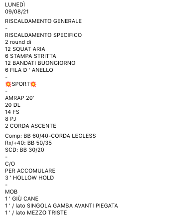 Pubblicato daprogettocrossfit9 agosto 202110 agosto 2021Pubblicato in: Wod Condividi: Fai clic per condividere su X (Si apre in una nuova finestra) X Fai clic per condividere su Facebook (Si apre in una nuova finestra) Facebook Mi piace Caricamento... Correlati