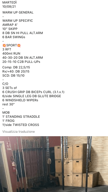 Pubblicato daprogettocrossfit10 agosto 202125 agosto 2021Pubblicato in: Wod Condividi: Fai clic per condividere su X (Si apre in una nuova finestra) X Fai clic per condividere su Facebook (Si apre in una nuova finestra) Facebook Mi piace Caricamento... Correlati