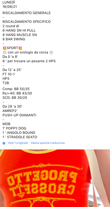 Pubblicato daprogettocrossfit16 agosto 202125 agosto 2021Pubblicato in: Wod Condividi: Fai clic per condividere su X (Si apre in una nuova finestra) X Fai clic per condividere su Facebook (Si apre in una nuova finestra) Facebook Mi piace Caricamento... Correlati