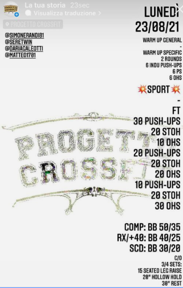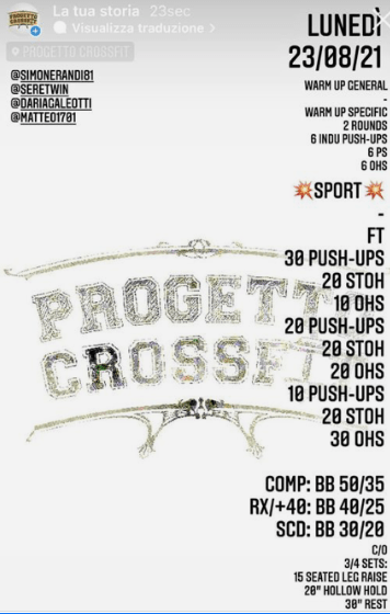 Pubblicato daprogettocrossfit23 agosto 202125 agosto 2021Pubblicato in: Wod Condividi: Fai clic per condividere su X (Si apre in una nuova finestra) X Fai clic per condividere su Facebook (Si apre in una nuova finestra) Facebook Mi piace Caricamento... Correlati