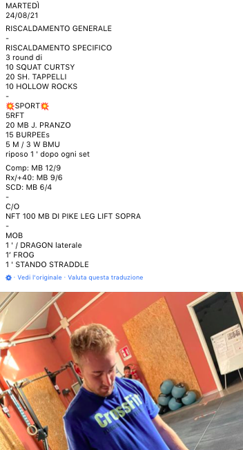 Pubblicato daprogettocrossfit24 agosto 202125 agosto 2021Pubblicato in: Wod Condividi: Fai clic per condividere su X (Si apre in una nuova finestra) X Fai clic per condividere su Facebook (Si apre in una nuova finestra) Facebook Mi piace Caricamento... Correlati