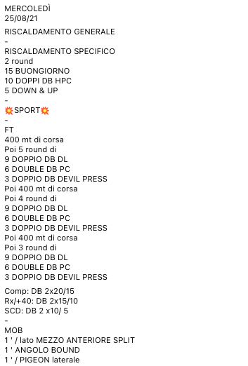 Pubblicato daprogettocrossfit25 agosto 202110 settembre 2021Pubblicato in: Wod Condividi: Fai clic per condividere su X (Si apre in una nuova finestra) X Fai clic per condividere su Facebook (Si apre in una nuova finestra) Facebook Mi piace Caricamento... Correlati