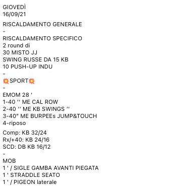 Pubblicato daprogettocrossfit16 settembre 20212 ottobre 2021Pubblicato in: Wod Condividi: Fai clic per condividere su X (Si apre in una nuova finestra) X Fai clic per condividere su Facebook (Si apre in una nuova finestra) Facebook Mi piace Caricamento... Correlati