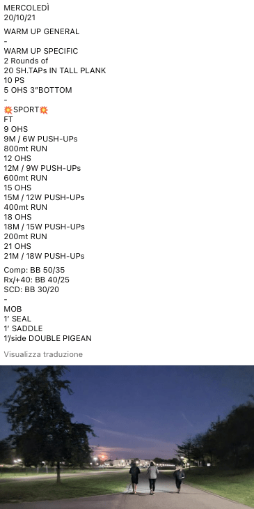 Pubblicato daprogettocrossfit20 ottobre 202128 ottobre 2021Pubblicato in: Wod Condividi: Fai clic per condividere su X (Si apre in una nuova finestra) X Fai clic per condividere su Facebook (Si apre in una nuova finestra) Facebook Mi piace Caricamento... Correlati