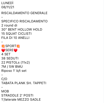 Pubblicato daprogettocrossfit8 novembre 202117 novembre 2021Pubblicato in: Wod Condividi: Fai clic per condividere su X (Si apre in una nuova finestra) X Fai clic per condividere su Facebook (Si apre in una nuova finestra) Facebook Mi piace Caricamento... Correlati