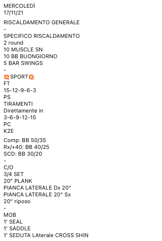 Pubblicato daprogettocrossfit17 novembre 202117 novembre 2021Pubblicato in: Wod Condividi: Fai clic per condividere su X (Si apre in una nuova finestra) X Fai clic per condividere su Facebook (Si apre in una nuova finestra) Facebook Mi piace Caricamento... Correlati