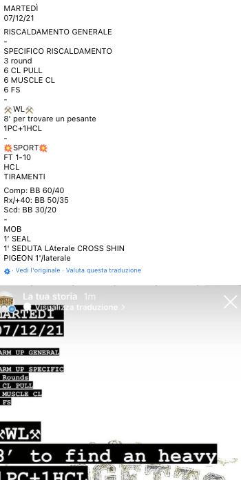 Pubblicato daprogettocrossfit7 dicembre 202122 dicembre 2021Pubblicato in: Wod Condividi: Fai clic per condividere su X (Si apre in una nuova finestra) X Fai clic per condividere su Facebook (Si apre in una nuova finestra) Facebook Mi piace Caricamento... Correlati