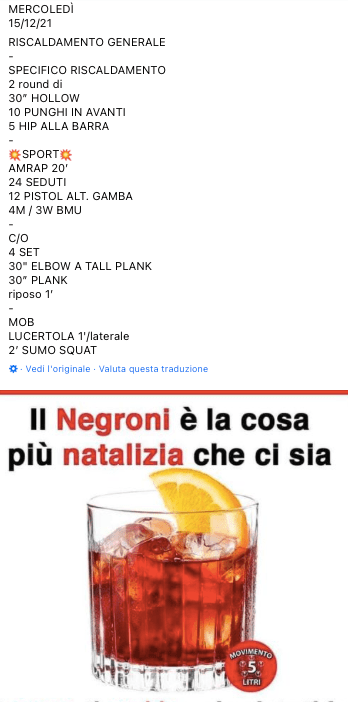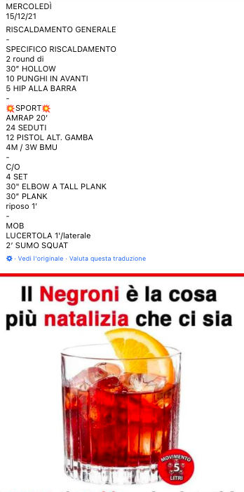 Pubblicato daprogettocrossfit15 dicembre 202122 dicembre 2021Pubblicato in: Wod Condividi: Fai clic per condividere su X (Si apre in una nuova finestra) X Fai clic per condividere su Facebook (Si apre in una nuova finestra) Facebook Mi piace Caricamento... Correlati