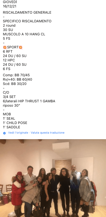Pubblicato daprogettocrossfit16 dicembre 202122 dicembre 2021Pubblicato in: Wod Condividi: Fai clic per condividere su X (Si apre in una nuova finestra) X Fai clic per condividere su Facebook (Si apre in una nuova finestra) Facebook Mi piace Caricamento... Correlati