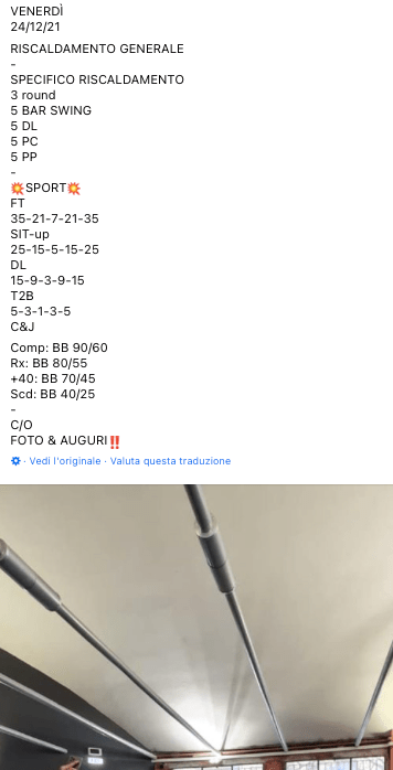 Pubblicato daprogettocrossfit24 dicembre 202117 gennaio 2022Pubblicato in: Wod Condividi: Fai clic per condividere su X (Si apre in una nuova finestra) X Fai clic per condividere su Facebook (Si apre in una nuova finestra) Facebook Mi piace Caricamento... Correlati