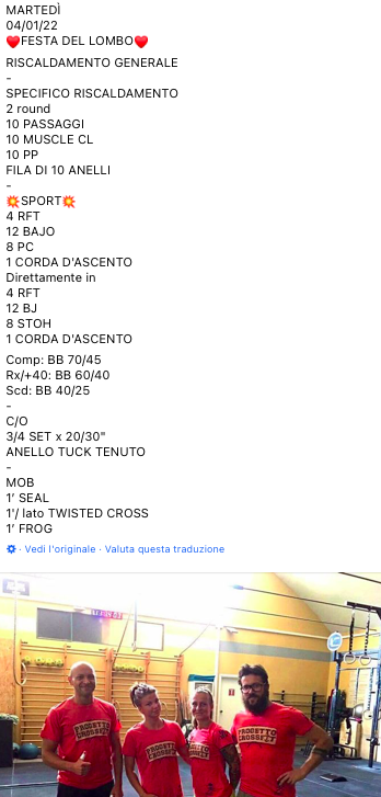 Pubblicato daprogettocrossfit4 gennaio 202217 gennaio 2022Pubblicato in: Wod Condividi: Fai clic per condividere su X (Si apre in una nuova finestra) X Fai clic per condividere su Facebook (Si apre in una nuova finestra) Facebook Mi piace Caricamento... Correlati