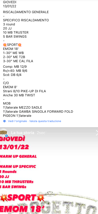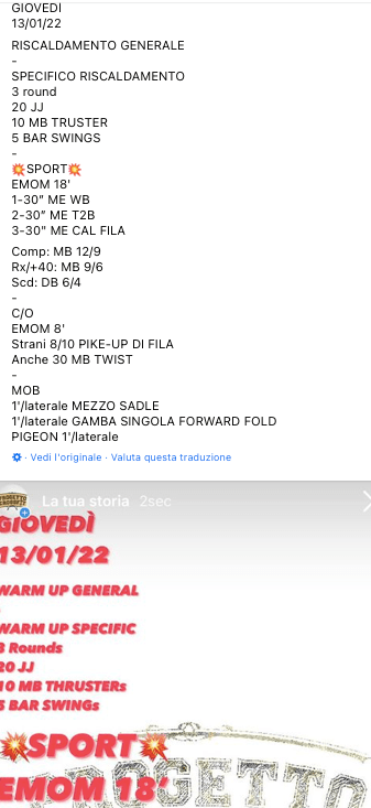 Pubblicato daprogettocrossfit13 gennaio 202217 gennaio 2022Pubblicato in: Wod Condividi: Fai clic per condividere su X (Si apre in una nuova finestra) X Fai clic per condividere su Facebook (Si apre in una nuova finestra) Facebook Mi piace Caricamento... Correlati