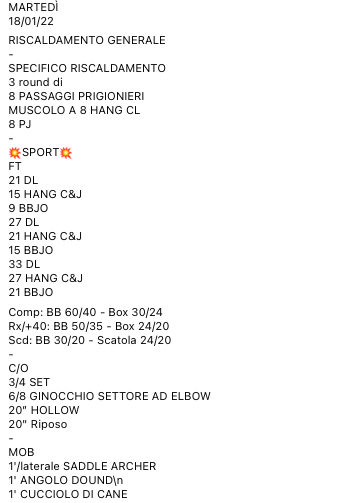 Pubblicato daprogettocrossfit18 gennaio 20222 febbraio 2022Pubblicato in: Wod Condividi: Fai clic per condividere su X (Si apre in una nuova finestra) X Fai clic per condividere su Facebook (Si apre in una nuova finestra) Facebook Mi piace Caricamento... Correlati