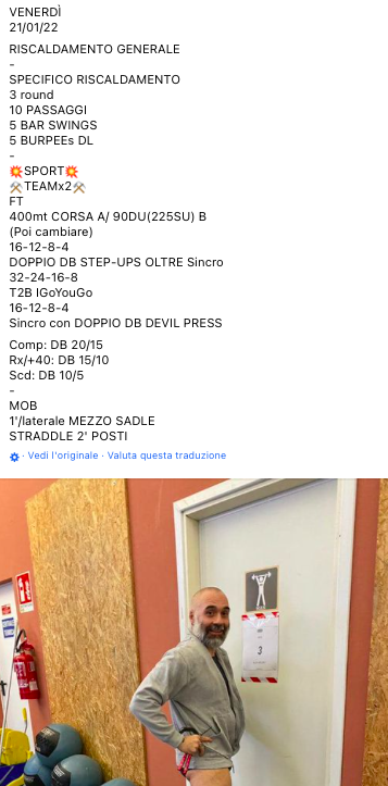 Pubblicato daprogettocrossfit21 gennaio 20222 febbraio 2022Pubblicato in: Wod Condividi: Fai clic per condividere su X (Si apre in una nuova finestra) X Fai clic per condividere su Facebook (Si apre in una nuova finestra) Facebook Mi piace Caricamento... Correlati
