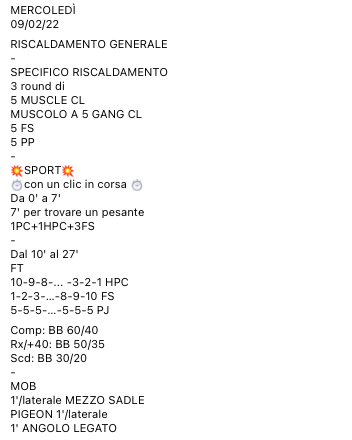 Pubblicato daprogettocrossfit9 febbraio 20229 febbraio 2022Pubblicato in: Wod Condividi: Fai clic per condividere su X (Si apre in una nuova finestra) X Fai clic per condividere su Facebook (Si apre in una nuova finestra) Facebook Mi piace Caricamento... Correlati