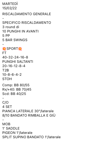 Pubblicato daprogettocrossfit15 febbraio 20221 marzo 2022Pubblicato in: Wod Condividi: Fai clic per condividere su X (Si apre in una nuova finestra) X Fai clic per condividere su Facebook (Si apre in una nuova finestra) Facebook Mi piace Caricamento... Correlati