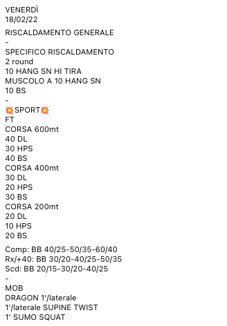 Pubblicato daprogettocrossfit18 febbraio 20221 marzo 2022Pubblicato in: Wod Condividi: Fai clic per condividere su X (Si apre in una nuova finestra) X Fai clic per condividere su Facebook (Si apre in una nuova finestra) Facebook Mi piace Caricamento... Correlati