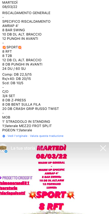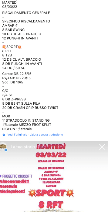 Pubblicato daprogettocrossfit8 marzo 202216 marzo 2022Pubblicato in: Wod Condividi: Fai clic per condividere su X (Si apre in una nuova finestra) X Fai clic per condividere su Facebook (Si apre in una nuova finestra) Facebook Mi piace Caricamento... Correlati
