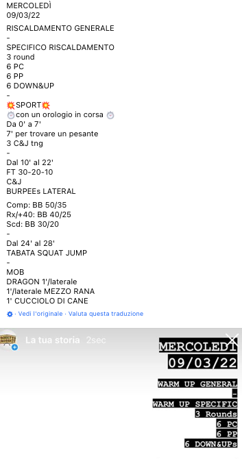 Pubblicato daprogettocrossfit9 marzo 202216 marzo 2022Pubblicato in: Wod Condividi: Fai clic per condividere su X (Si apre in una nuova finestra) X Fai clic per condividere su Facebook (Si apre in una nuova finestra) Facebook Mi piace Caricamento... Correlati