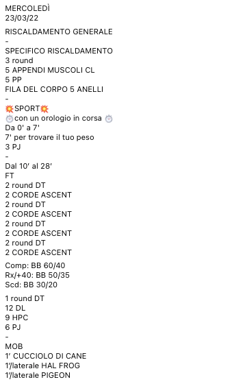 Pubblicato daprogettocrossfit23 marzo 202230 marzo 2022Pubblicato in: Wod Condividi: Fai clic per condividere su X (Si apre in una nuova finestra) X Fai clic per condividere su Facebook (Si apre in una nuova finestra) Facebook Mi piace Caricamento... Correlati