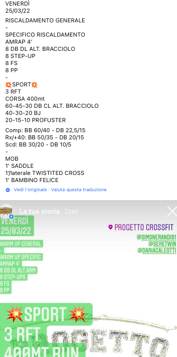 Pubblicato daprogettocrossfit25 marzo 202230 marzo 2022Pubblicato in: Wod Condividi: Fai clic per condividere su X (Si apre in una nuova finestra) X Fai clic per condividere su Facebook (Si apre in una nuova finestra) Facebook Mi piace Caricamento... Correlati