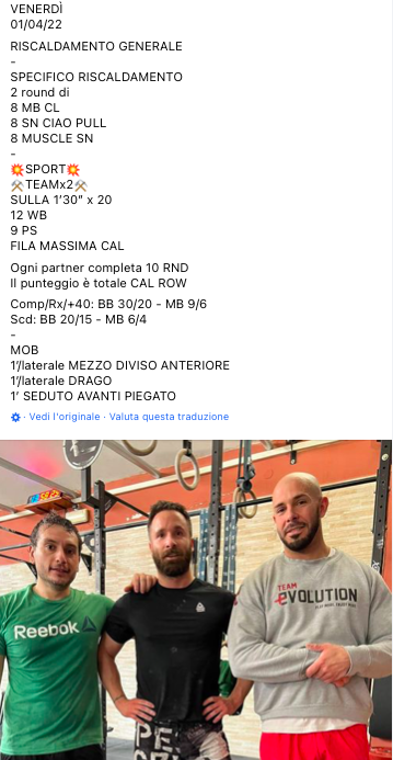 Pubblicato daprogettocrossfit1 aprile 202211 aprile 2022Pubblicato in: Wod Condividi: Fai clic per condividere su X (Si apre in una nuova finestra) X Fai clic per condividere su Facebook (Si apre in una nuova finestra) Facebook Mi piace Caricamento... Correlati