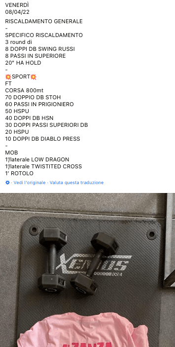 Pubblicato daprogettocrossfit8 aprile 202211 aprile 2022Pubblicato in: Wod Condividi: Fai clic per condividere su X (Si apre in una nuova finestra) X Fai clic per condividere su Facebook (Si apre in una nuova finestra) Facebook Mi piace Caricamento... Correlati
