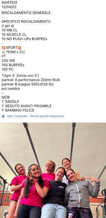 Pubblicato daprogettocrossfit12 aprile 202227 aprile 2022Pubblicato in: Wod Condividi: Fai clic per condividere su X (Si apre in una nuova finestra) X Fai clic per condividere su Facebook (Si apre in una nuova finestra) Facebook Mi piace Caricamento... Correlati