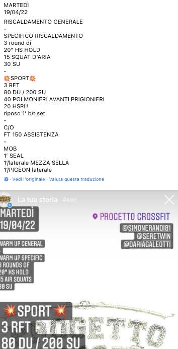 Pubblicato daprogettocrossfit19 aprile 202227 aprile 2022Pubblicato in: Wod Condividi: Fai clic per condividere su X (Si apre in una nuova finestra) X Fai clic per condividere su Facebook (Si apre in una nuova finestra) Facebook Mi piace Caricamento... Correlati