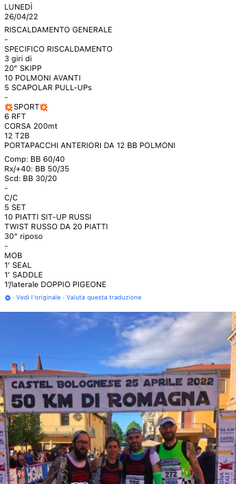 Pubblicato daprogettocrossfit26 aprile 202227 aprile 2022Pubblicato in: Wod Condividi: Fai clic per condividere su X (Si apre in una nuova finestra) X Fai clic per condividere su Facebook (Si apre in una nuova finestra) Facebook Mi piace Caricamento... Correlati