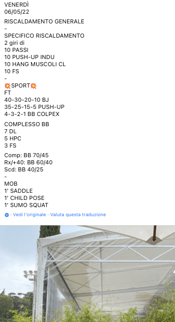 Pubblicato daprogettocrossfit6 Maggio 20229 Maggio 2022Pubblicato in: Wod Condividi: Fai clic per condividere su X (Si apre in una nuova finestra) X Fai clic per condividere su Facebook (Si apre in una nuova finestra) Facebook Mi piace Caricamento... Correlati