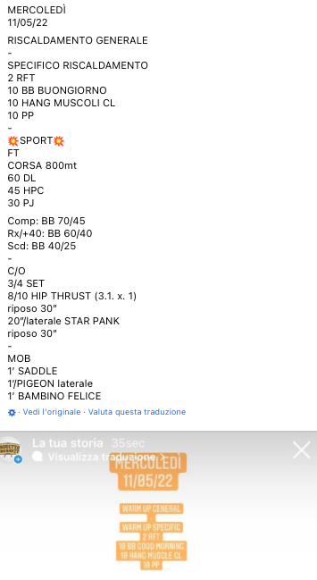 Pubblicato daprogettocrossfit11 Maggio 202218 Maggio 2022Pubblicato in: Wod Condividi: Fai clic per condividere su X (Si apre in una nuova finestra) X Fai clic per condividere su Facebook (Si apre in una nuova finestra) Facebook Mi piace Caricamento... Correlati