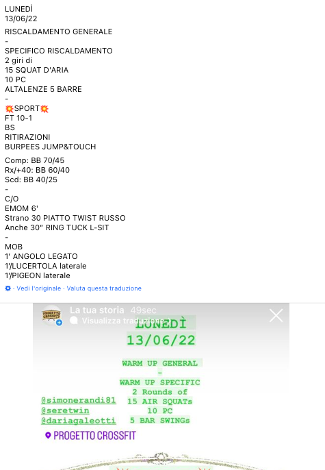 Pubblicato daprogettocrossfit13 giugno 202215 giugno 2022Pubblicato in: Wod Condividi: Fai clic per condividere su X (Si apre in una nuova finestra) X Fai clic per condividere su Facebook (Si apre in una nuova finestra) Facebook Mi piace Caricamento... Correlati
