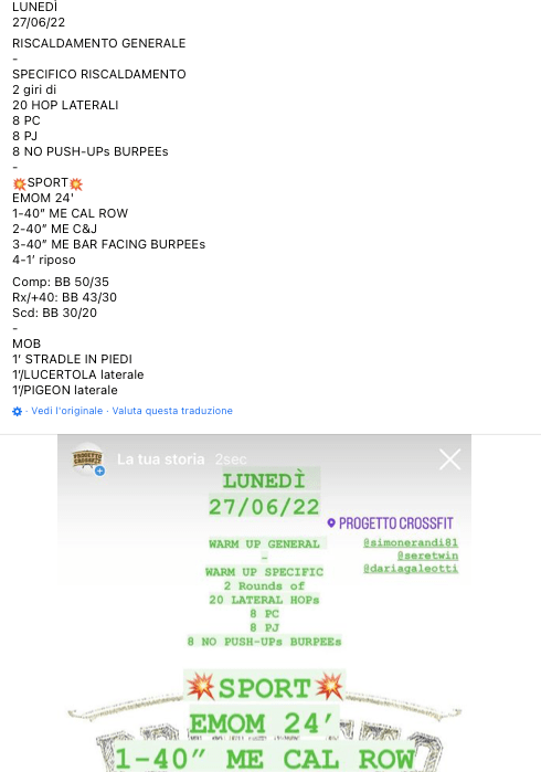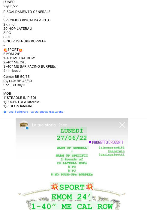Pubblicato daprogettocrossfit27 giugno 20224 luglio 2022Pubblicato in: Wod Condividi: Fai clic per condividere su X (Si apre in una nuova finestra) X Fai clic per condividere su Facebook (Si apre in una nuova finestra) Facebook Mi piace Caricamento... Correlati