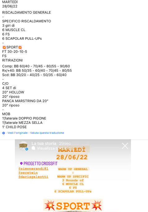 Pubblicato daprogettocrossfit28 giugno 20224 luglio 2022Pubblicato in: Wod Condividi: Fai clic per condividere su X (Si apre in una nuova finestra) X Fai clic per condividere su Facebook (Si apre in una nuova finestra) Facebook Mi piace Caricamento... Correlati