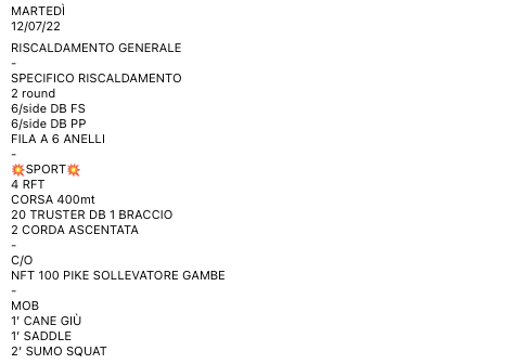 Pubblicato daprogettocrossfit12 luglio 202216 luglio 2022Pubblicato in: Wod Condividi: Fai clic per condividere su X (Si apre in una nuova finestra) X Fai clic per condividere su Facebook (Si apre in una nuova finestra) Facebook Mi piace Caricamento... Correlati