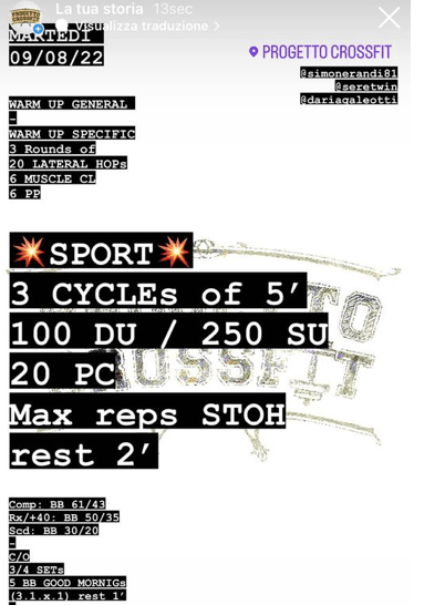 Pubblicato daprogettocrossfit9 agosto 202225 agosto 2022Pubblicato in: Wod Condividi: Fai clic per condividere su X (Si apre in una nuova finestra) X Fai clic per condividere su Facebook (Si apre in una nuova finestra) Facebook Mi piace Caricamento... Correlati