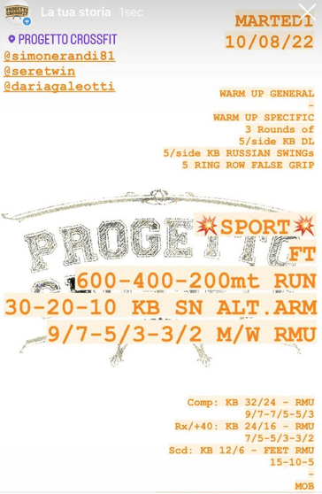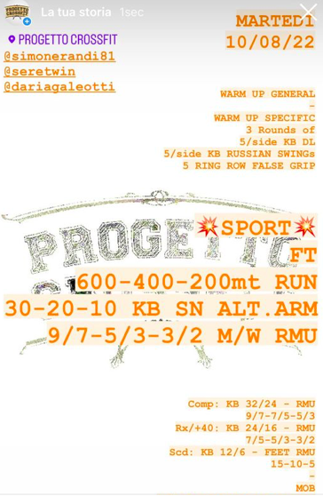 Pubblicato daprogettocrossfit10 agosto 202225 agosto 2022Pubblicato in: Wod Condividi: Fai clic per condividere su X (Si apre in una nuova finestra) X Fai clic per condividere su Facebook (Si apre in una nuova finestra) Facebook Mi piace Caricamento... Correlati
