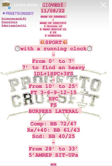 Pubblicato daprogettocrossfit11 agosto 202225 agosto 2022Pubblicato in: Wod Condividi: Fai clic per condividere su X (Si apre in una nuova finestra) X Fai clic per condividere su Facebook (Si apre in una nuova finestra) Facebook Mi piace Caricamento... Correlati
