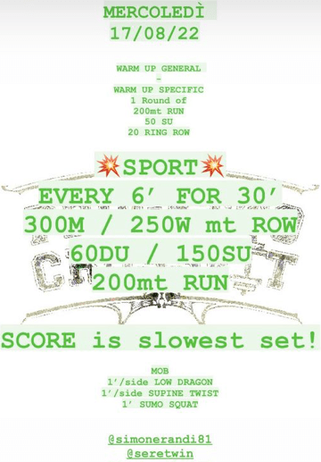 Pubblicato daprogettocrossfit17 agosto 202225 agosto 2022Pubblicato in: Wod Condividi: Fai clic per condividere su X (Si apre in una nuova finestra) X Fai clic per condividere su Facebook (Si apre in una nuova finestra) Facebook Mi piace Caricamento... Correlati