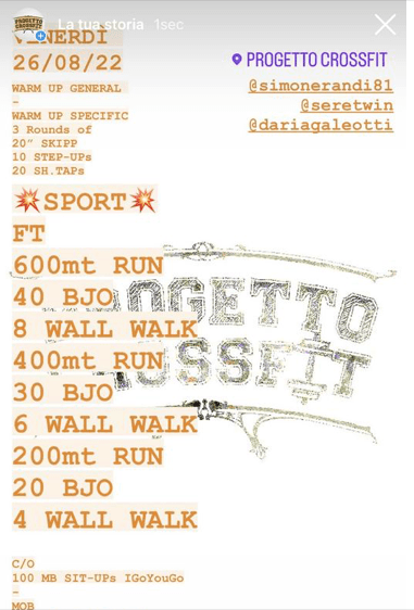 Pubblicato daprogettocrossfit26 agosto 202218 settembre 2022Pubblicato in: Wod Condividi: Fai clic per condividere su X (Si apre in una nuova finestra) X Fai clic per condividere su Facebook (Si apre in una nuova finestra) Facebook Mi piace Caricamento... Correlati