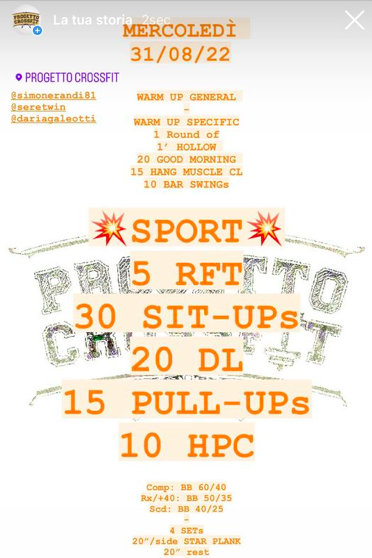 Pubblicato daprogettocrossfit31 agosto 202218 settembre 2022Pubblicato in: Wod Condividi: Fai clic per condividere su X (Si apre in una nuova finestra) X Fai clic per condividere su Facebook (Si apre in una nuova finestra) Facebook Mi piace Caricamento... Correlati