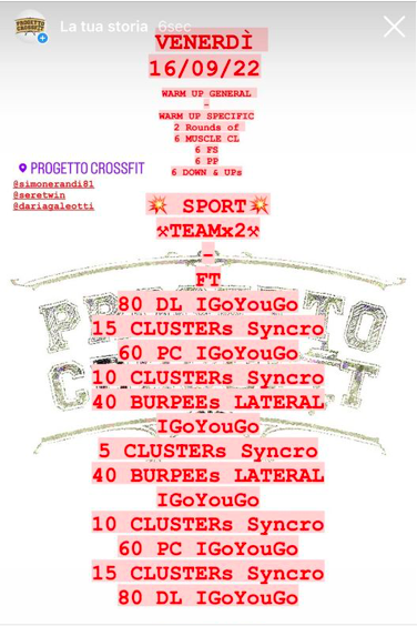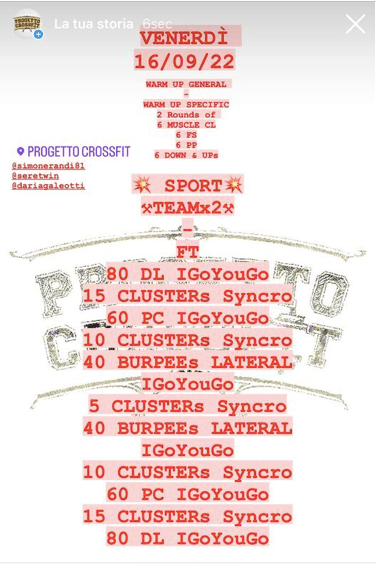 Pubblicato daprogettocrossfit16 settembre 202218 settembre 2022Pubblicato in: Wod Condividi: Fai clic per condividere su X (Si apre in una nuova finestra) X Fai clic per condividere su Facebook (Si apre in una nuova finestra) Facebook Mi piace Caricamento... Correlati