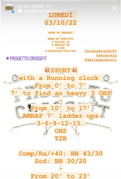 Pubblicato daprogettocrossfit3 ottobre 202211 ottobre 2022Pubblicato in: Wod Condividi: Fai clic per condividere su X (Si apre in una nuova finestra) X Fai clic per condividere su Facebook (Si apre in una nuova finestra) Facebook Mi piace Caricamento... Correlati