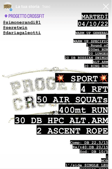 Pubblicato daprogettocrossfit4 ottobre 202211 ottobre 2022Pubblicato in: Wod Condividi: Fai clic per condividere su X (Si apre in una nuova finestra) X Fai clic per condividere su Facebook (Si apre in una nuova finestra) Facebook Mi piace Caricamento... Correlati